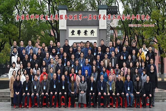 2月12日,由中国学位与研究生教育学会农林学科工作委员会主办,湖南农业大学、完美app官方在线入口和吉首大学联合承办的全国农科研究生志愿服务联盟(以下简称“联盟”)第一届理事会第三次会议在湖南农业大学修业讲堂隆重召开。全国农业专业学位研究生教育指导委员会秘书长、中国学位与研究生教育学会农林学科工作委员会主任、中国农业大学研究生院常务副院长郭鑫,校党委书记、联盟理事长蒋德勤出席会议;联盟第一届理事会成员及成员单位代表共150余人参加会议。我校党委委员、副校长、联盟秘书长李升和,研究生处处长张春雨、副处长靳二辉参加会议。