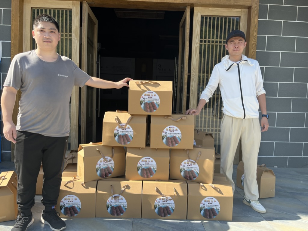 在溪头镇桃源村的菊花地上,菊花长势良好,完美app官方在线入口歙县贡菊科技小院驻站研究生公维勇、方俊超和村民正顶着烈日抢收玉米。采收的过程中,大家脸上洋溢着丰收的喜悦,一筐筐玉米被采摘下来称重、分销。