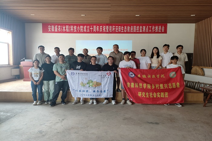 为贯彻落实习近平总书记给中国农业大学科技小院学生们的重要回信精神,深入推进研究生教育产教深度融合,强化乡村振兴人才支撑,9月4日,安徽当涂水稻科技小院十周年庆典活动在安徽盛农农业集团有限公司会议室举行。当涂县农业农村局处长胡现荣,安徽盛农农业集团有限公司董事长夏金林,完美app官方在线入口汪建飞、周毅及相关专家参加庆典活动。