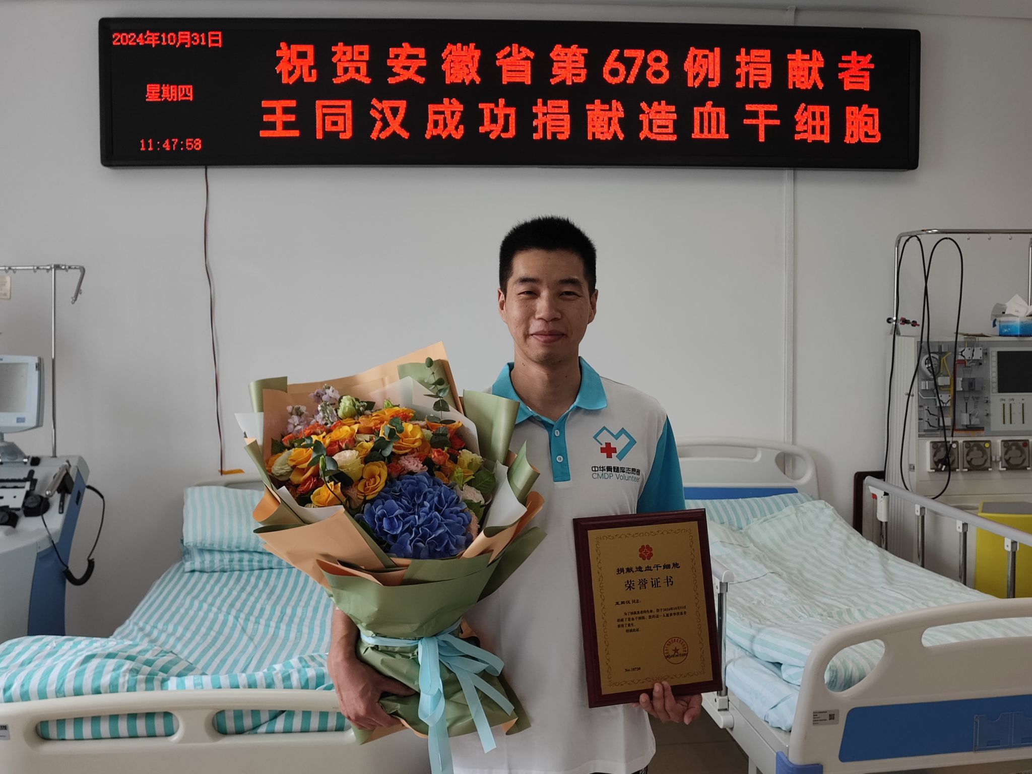 近日,我校农学院2023级研究生王同汉在安徽省立医院成功完成造血干细胞的采集和捐献,为一名白血病患者点亮了希望的生命之光,成为我校首例、安徽省第678例造血干细胞捐献者。王同汉的捐献行为得到了学校和社会各界的大力支持和赞誉。