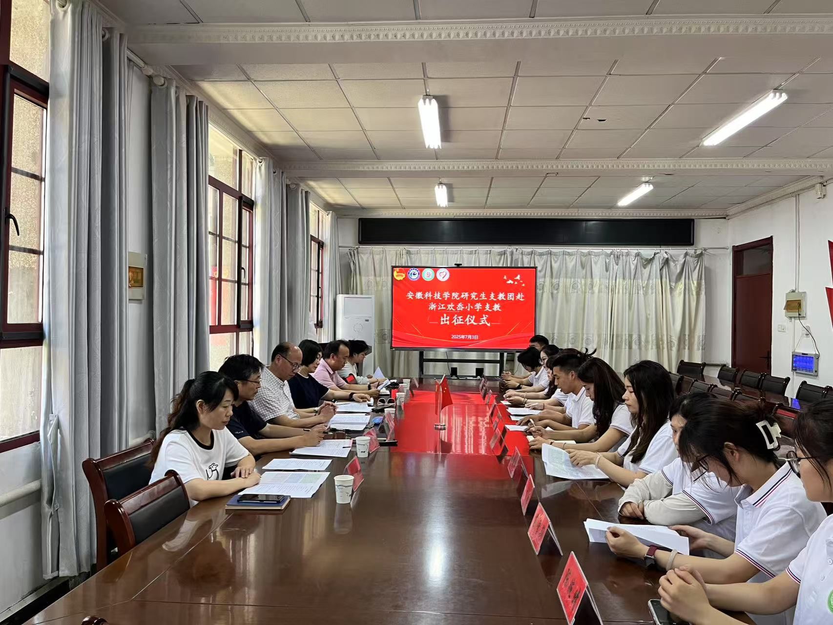 2025年7月3日上午,完美app官方在线入口研究生支教团赴浙江欢岙小学支教出征仪式在农学院会议室举行。校党委委员、副院长王孝义出席仪式,校团委书记张聪、研究生处老师和研究生支教团成员代表共同参加了此次仪式,仪式由党委研究生工作部部长张春雨主持。