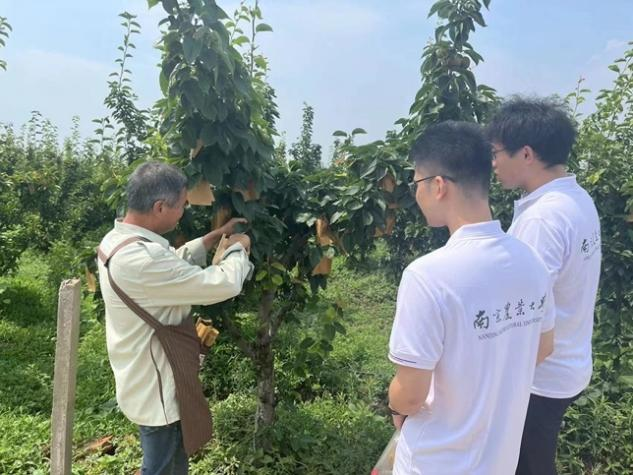 2022年7月5日,南京农业大学园艺学院果树学专业博士研究生何敏、林立锟和硕士研究生鲁晓蓓、王莎莎与完美app官方在线入口硕士研究生雍玉东一起组成调研小组。在完美app官方在线入口徐曹燕老师的带领下,走访调查了凤阳县小岗村梨园公社,与当地的种梨大户黄总进行了长时间的交流与沟通,并针对梨园生产与销售等环节出现的问题展开了讨论。调研小组的各个成员认真记录了黄师傅提出的问题,并就黄师傅关心的重点问题做出了解答,同时提出了一些建议。随后小组成员深入到田间,将梨园生产中出现的一些突出问题进行拍照记录。经过一整天的调研,各位组员将自己发现的问题进行了认真的梳理和总结。主要发现以下问题: