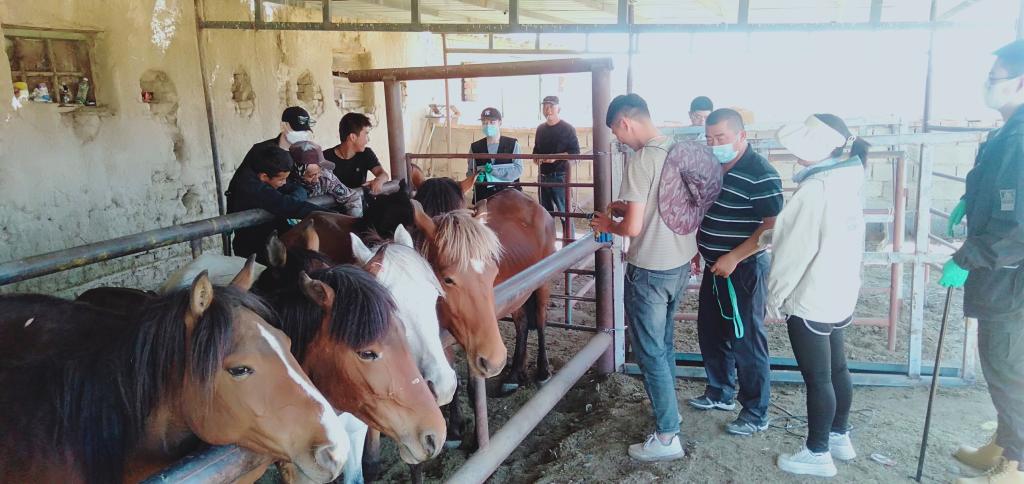 为推动乡村产业升级、加快农业农村现代化步伐,动物科学学院“伊”马当先技术服务团队在昭苏县开展伊犁马专门化品系培育相关研究,给村民们提供技术指导。