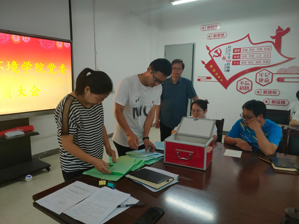 大会表决通过《资源与环境学院党委工作报告》《中共完美app官方在线入口资源与环境学院委员会党员大会选举办法》(草案)和监票人、计票人建议名单,采取无记名差额投票选举的办法,选举产生了李孟良、李孝良、沈树周、邹海明、李飞跃、范行军、吴国良等七位同志为新一届党委委员;选举沈树周、纪文超、王泓等三位同志为第一届纪委委员。