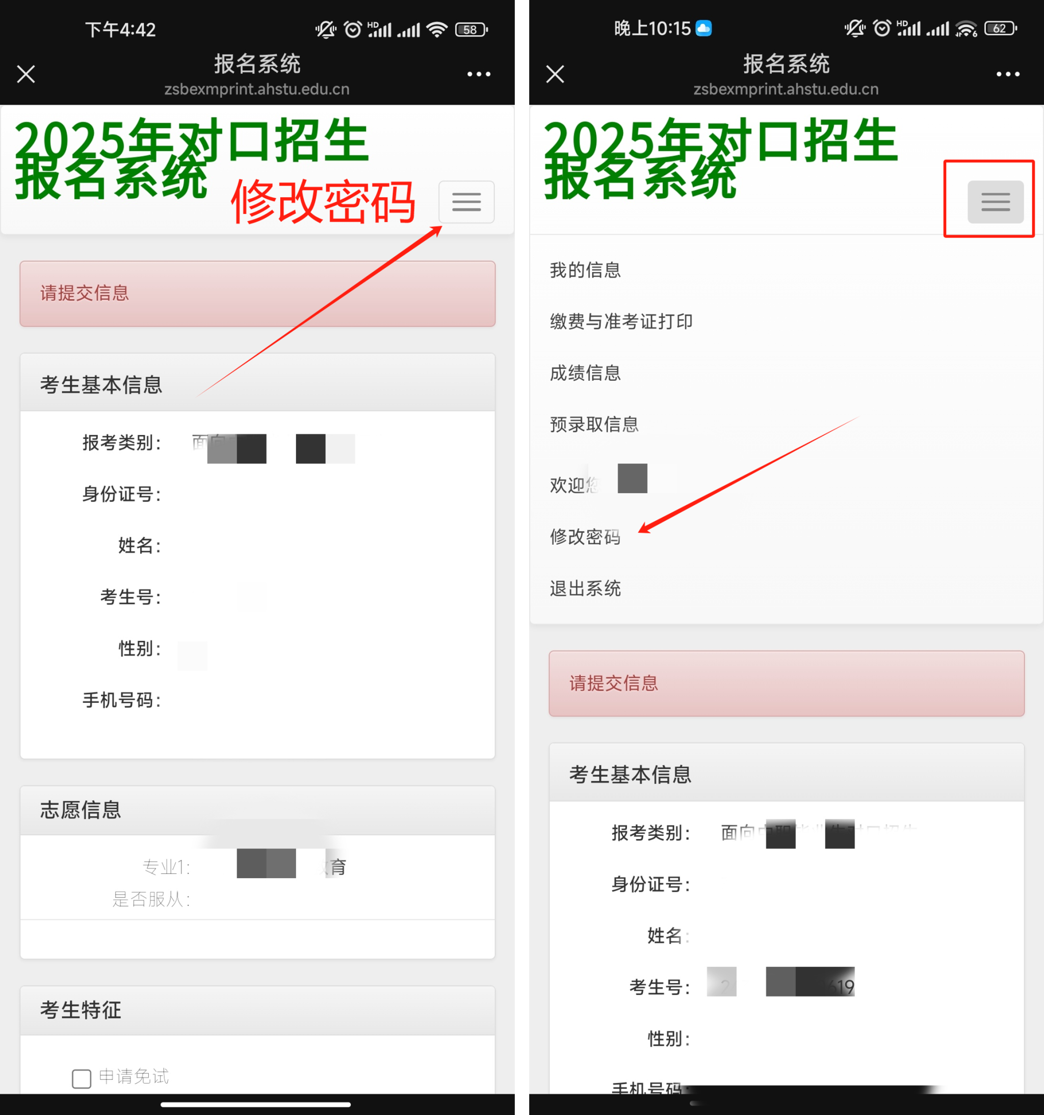 第三步:输入账号密码登录系统:账号:身份证号,密码:考生号后六位。