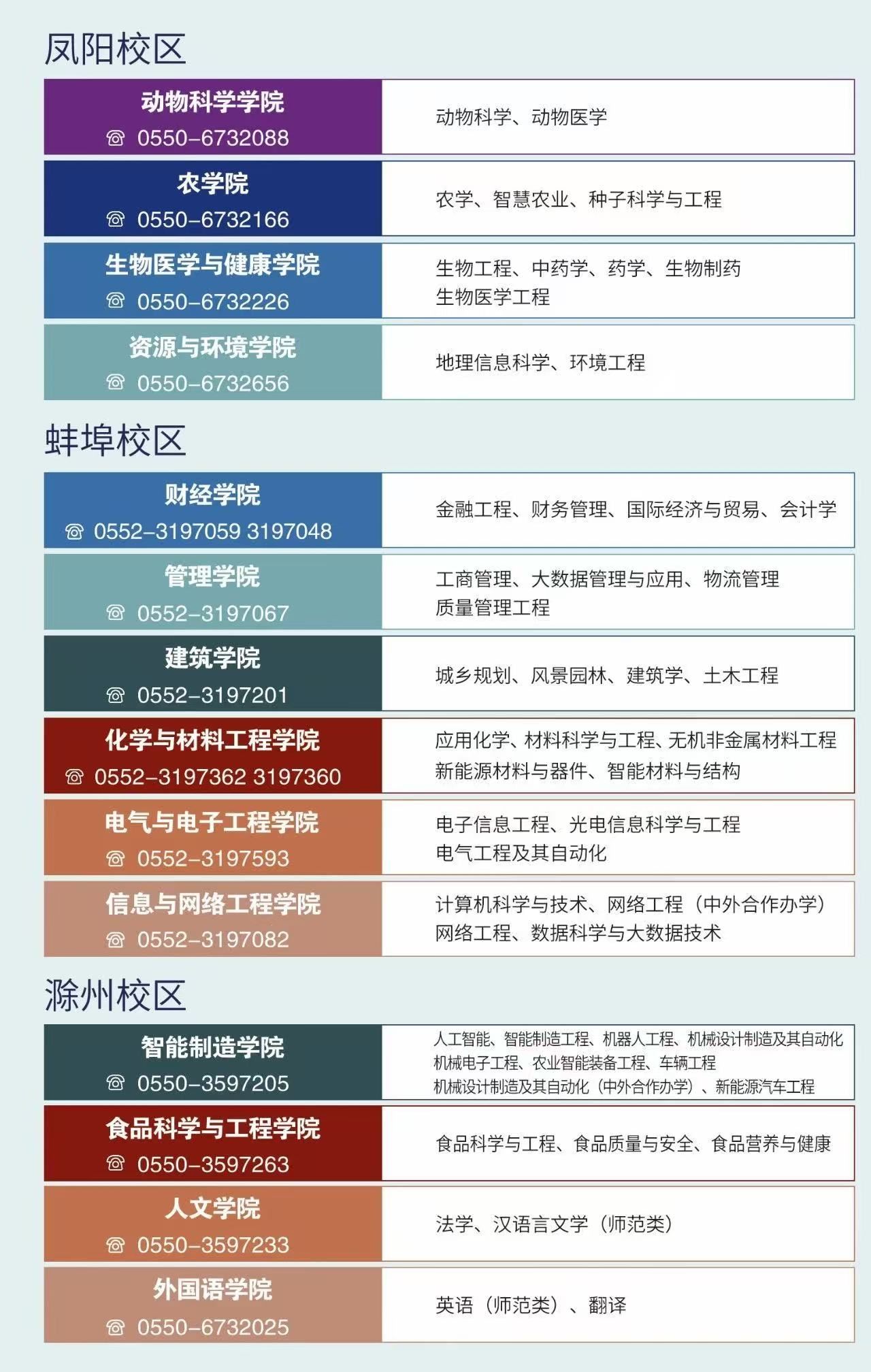 0552-3197041、3197178(蚌埠校区)